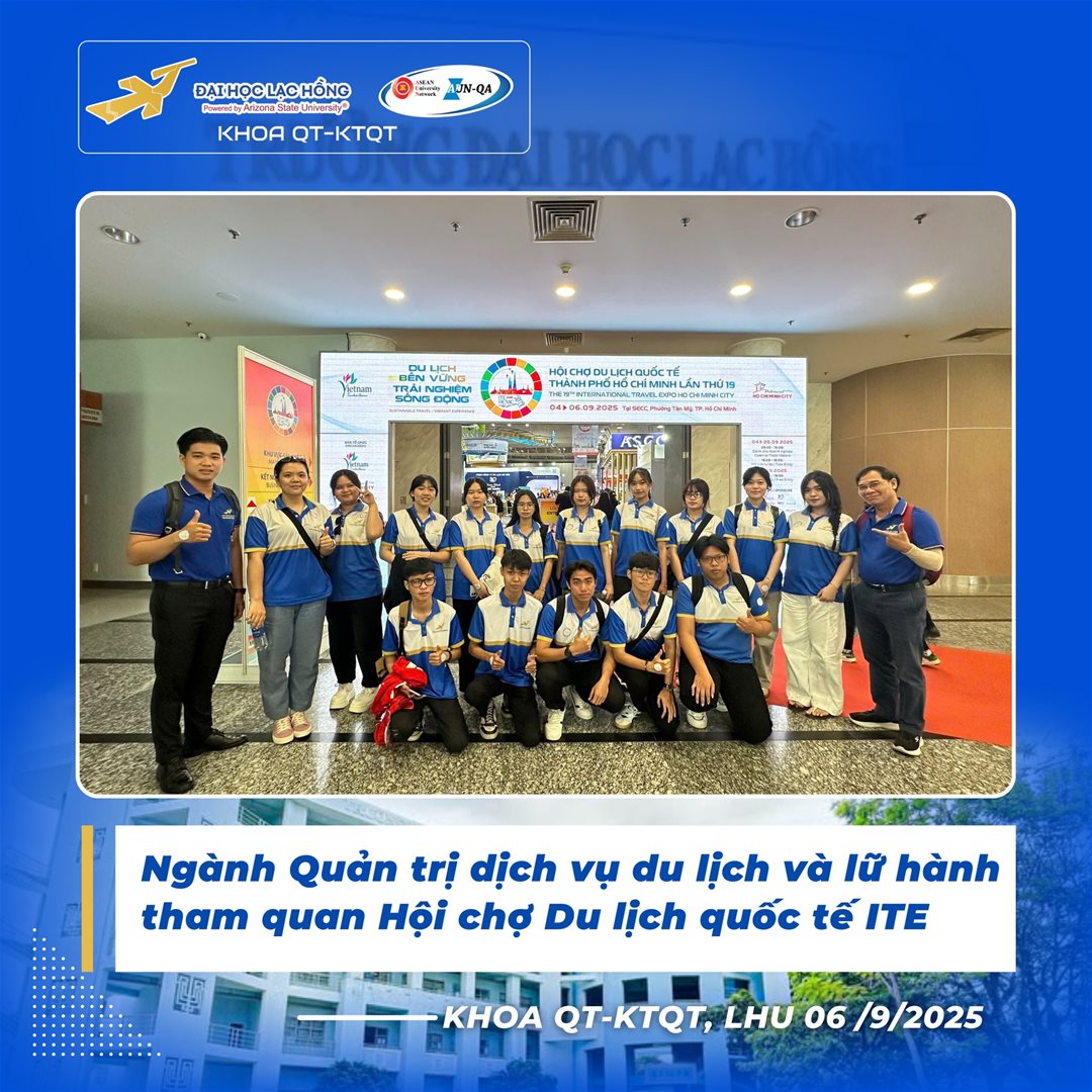 Khoa Quản trị – Kinh tế quốc tế hướng đến xây dựng thế hệ sinh viên Quản trị dịch vụ du lịch và lữ hành có tư duy toàn cầu, kỹ năng nghề nghiệp vững vàng và khả năng thích ứng cao trong bối cảnh hội nhập quốc tế. Những chuyến đi thực tế như ITE 2025 không chỉ giúp sinh viên “đi để thấy”, mà còn “học để làm” – từng bước khẳng định năng lực và bản lĩnh của sinh viên Lạc Hồng trên bản đồ đào tạo du lịch chất lượng Việt Nam