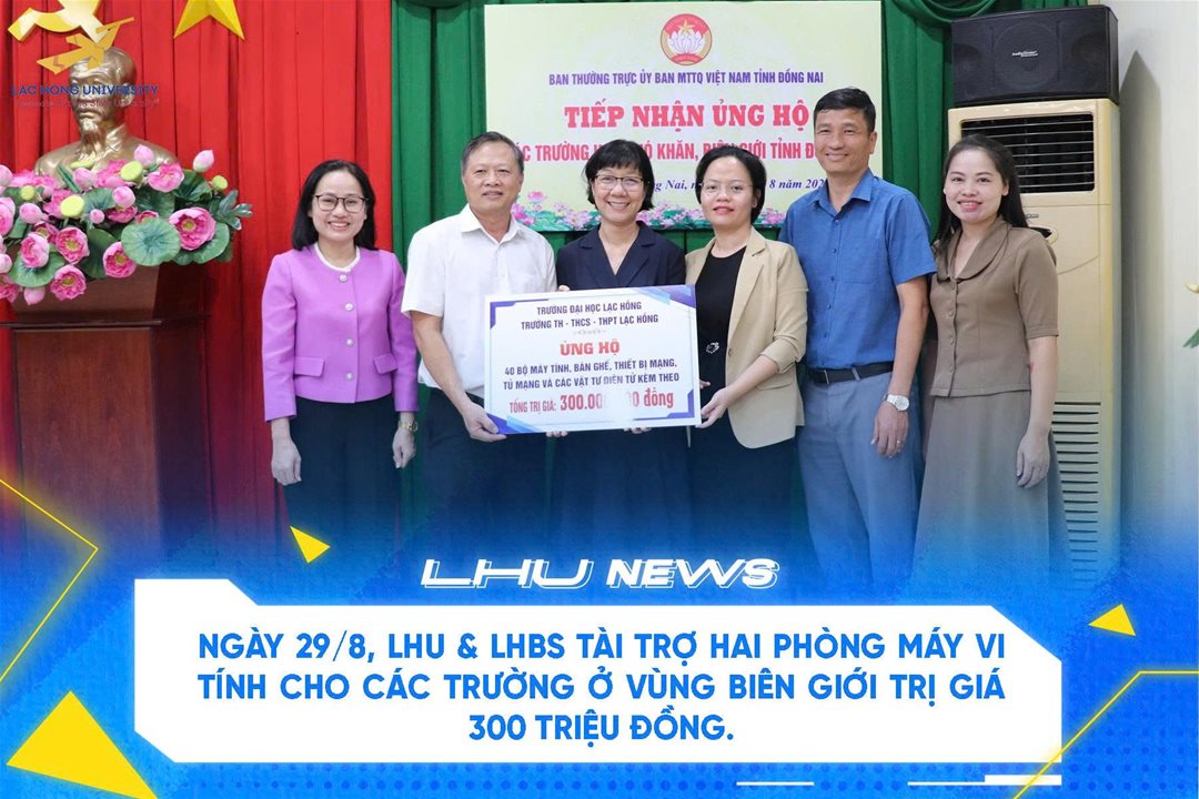 On August 29, 2025, Lac Hong University (LHU) in partnership with Lac Hong Bilingual School (LHBS) directly donated two computer labs worth 300 million VND to schools in border areas.