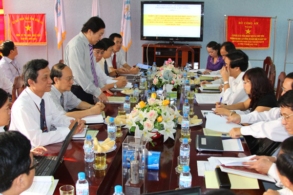 At the working session with the delegation, Dr. Do Huu Tai made a report on the implementation of policies, laws on associate training programs (inside and outside the country), Resolution No. 35/2009/QH12 on financial innovation in training and education from 2009 – 2010 to 2014 – 2015 and Resolution No. 50/2010/QH12 on the university foundation, investment and quality assurance for higher education.