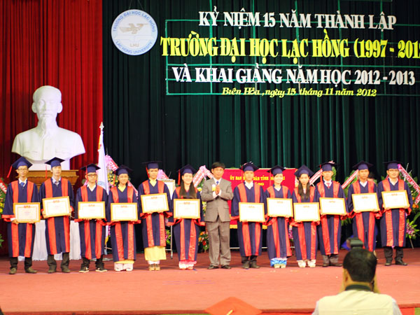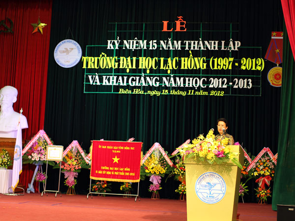 A solemn ceremony was held at Dong Nai provincial Event and Convention Center on November 15 to celebrate the 15th founding anniversary of Lac Hong University and open its new school year 2012 - 2013.