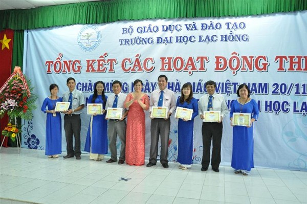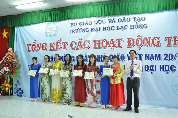 On the occasion of the 30th anniversary of Vietnamese Teachers’ Day (November 20, 1982 – November 20, 2012), a meeting was held on November 19, 2012 at A301 to sum up activities and to honor Teachers for their outstanding achievements by the Trade Union Executive Committee in cooperation with chapters. Earlier, a series of activities have been held in Lac Hong University to celebrate the Vietnamese Teachers’ Day and and mark the 15th founding anniversary of Lac Hong University.