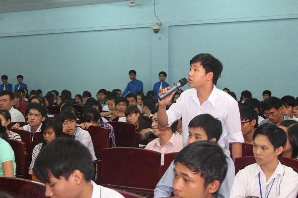 At the program, the participants raised many questions to the Board. These questions mainly focused on areas such as education, scientific research, internships, facilities upgrading, training majors, ....  The Board directly responded to these questions.