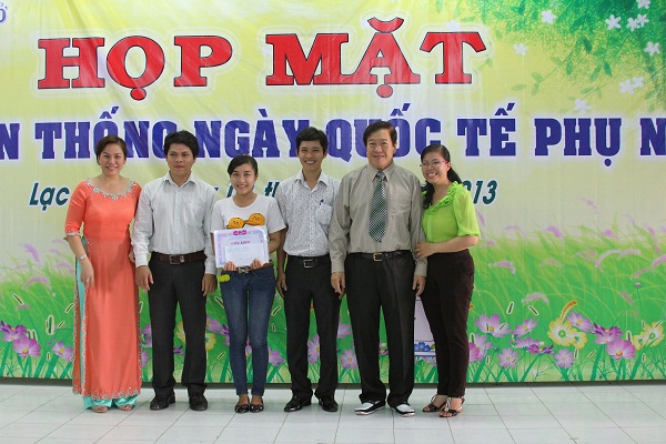 Representing the leadership, Rector Do Huu Tai sent meaningful gifts to all women of Lac Hong University. Also, at the meeting, the awarding ceremony of the cooking contest which was held on the same day took place. The best cooking teams were awarded certificates of merit and bonuses. Besides, group leaders of Trade Union branches were presented gifts for their contributions at the meeting.