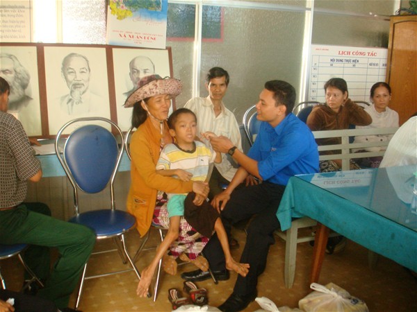 On April 26, LHU's Youth Union – Student Association in association with Dong Nai AO/dioxin Victims’ Association visited and presented gifts to 20 AO/dioxin victims in Cam My and Dinh Quan districts. Each gift included 20 kilos of rice, cooking oil, cakes,... equivalent VND 300,000 and VND 300,000 in cash.