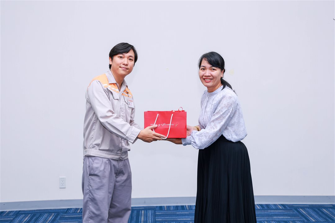Đại diện ngành Nhật Bản học trao tặng quà cảm ơn đến Đại diện Công ty Lixil Vina