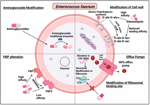 Resistance mechanisms of E. faecium