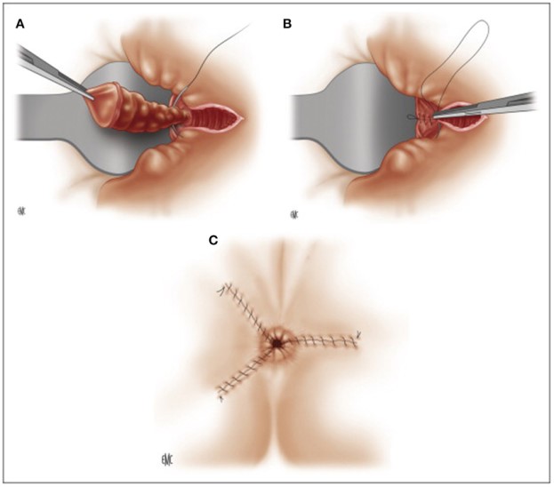 Figure 3. Surgical treatment of hemorrhoids: Milligan–Morgan technique.